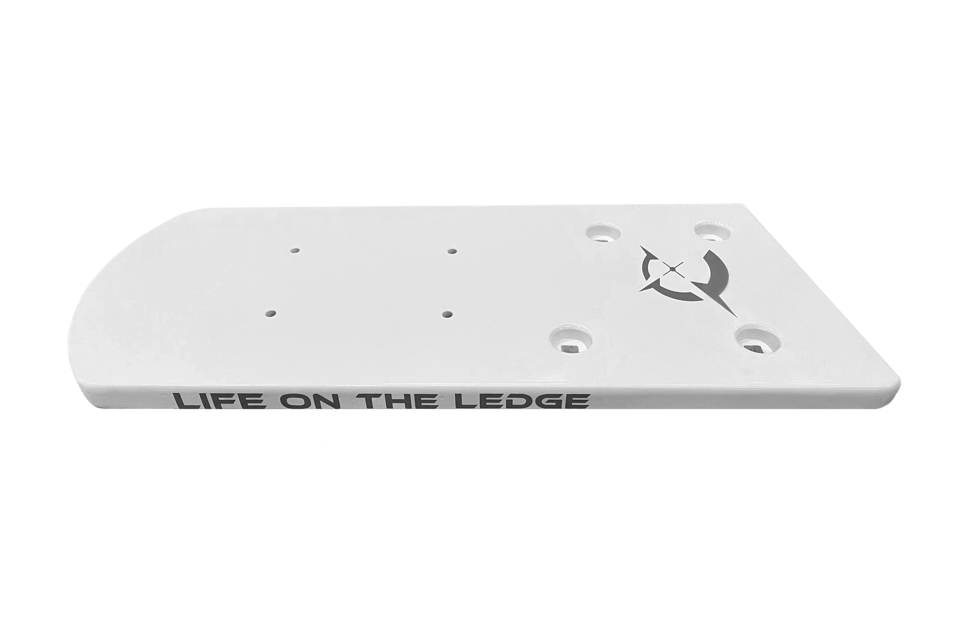 Our trolling motor brackets, made with 6061 Aluminum, are custom designed for your specific boat to ensure harmonious balance between look and function. The 3/8” backing plate is CnC cut to perfectly match the surface area and mounting holes of the bracket for the best possible load distribution. Both pieces are powder coated in a gloss white.